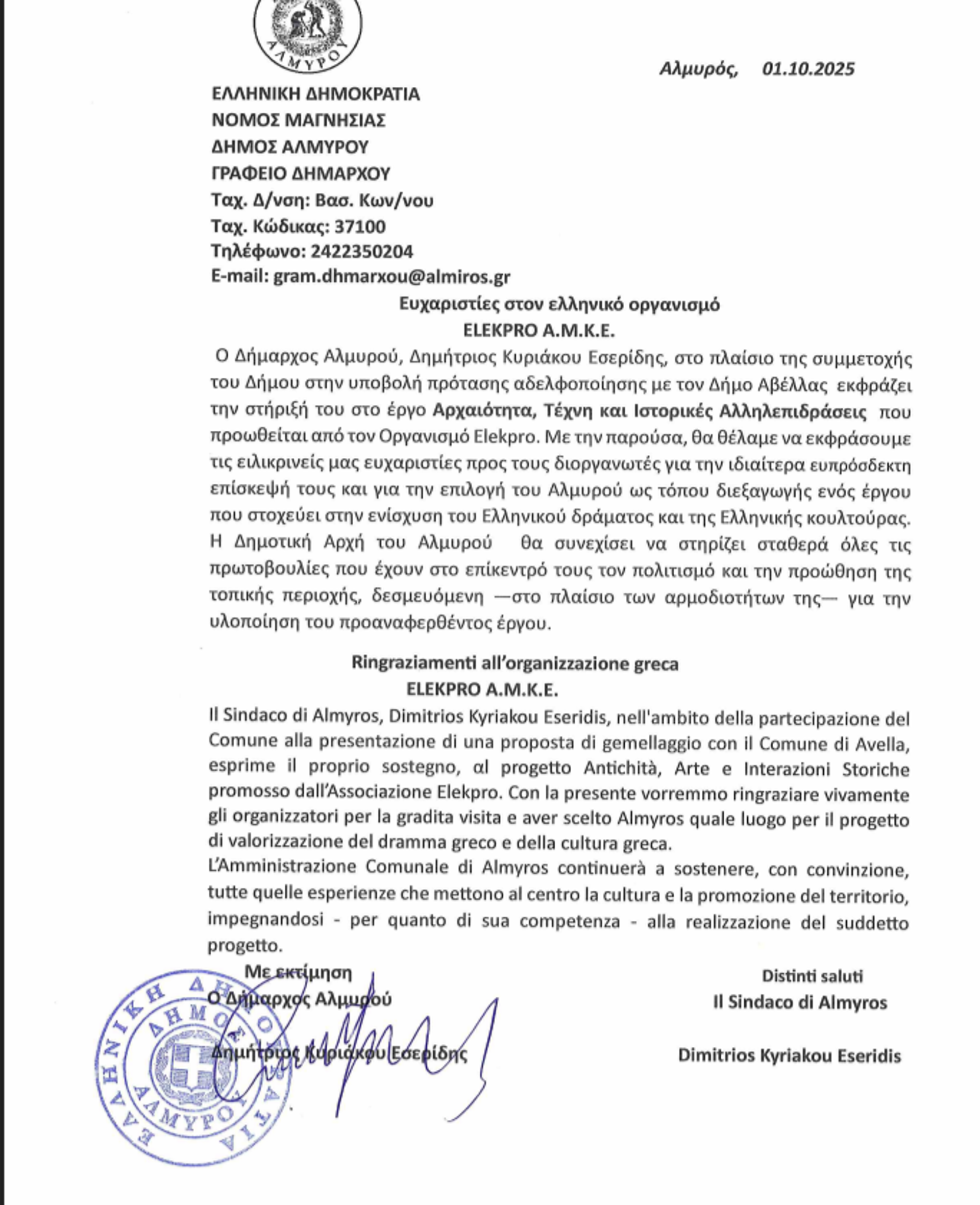 Με την μεσολάβηση της ΕΛΕΚΠΡΟ ΑΜΚΕ πετύχαμε την αδελφοποίηση των Δήμων Άβελα-Αλμυρού.